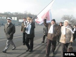 Оппозиция белсенділері Желтоқсан көтерілісін еске алу митингісіне келе жатыр. Алматы, 17 желтоқсан 2008 жыл.