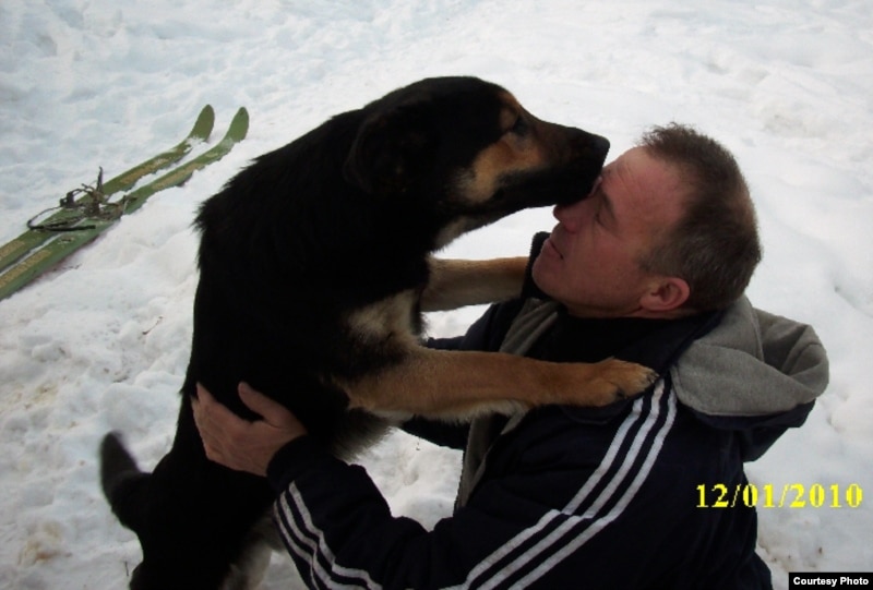 Текелі қаласының тұрғыны Ренат Минибаев итімен бірге. Жеке мұрағаттағы сурет. Алматы облысы, 12 қаңтар 2010 жыл.