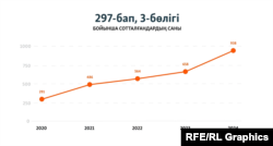 2024 жылы 297-баптың 3-бөлігі бойынша 938 адам сотталды. Олардың басым көпшілігі 10 жылдан 15 жылға дейінгі мерзімге бас еркіндігінен айырылды. Биылдан бастап осы бап бойынша жаза мерзімі сәл кеміді, қылмыс жасағандарға енді 7 жылдан 12 жылға дейінгі мерзімге қамау жазасы беріледі.